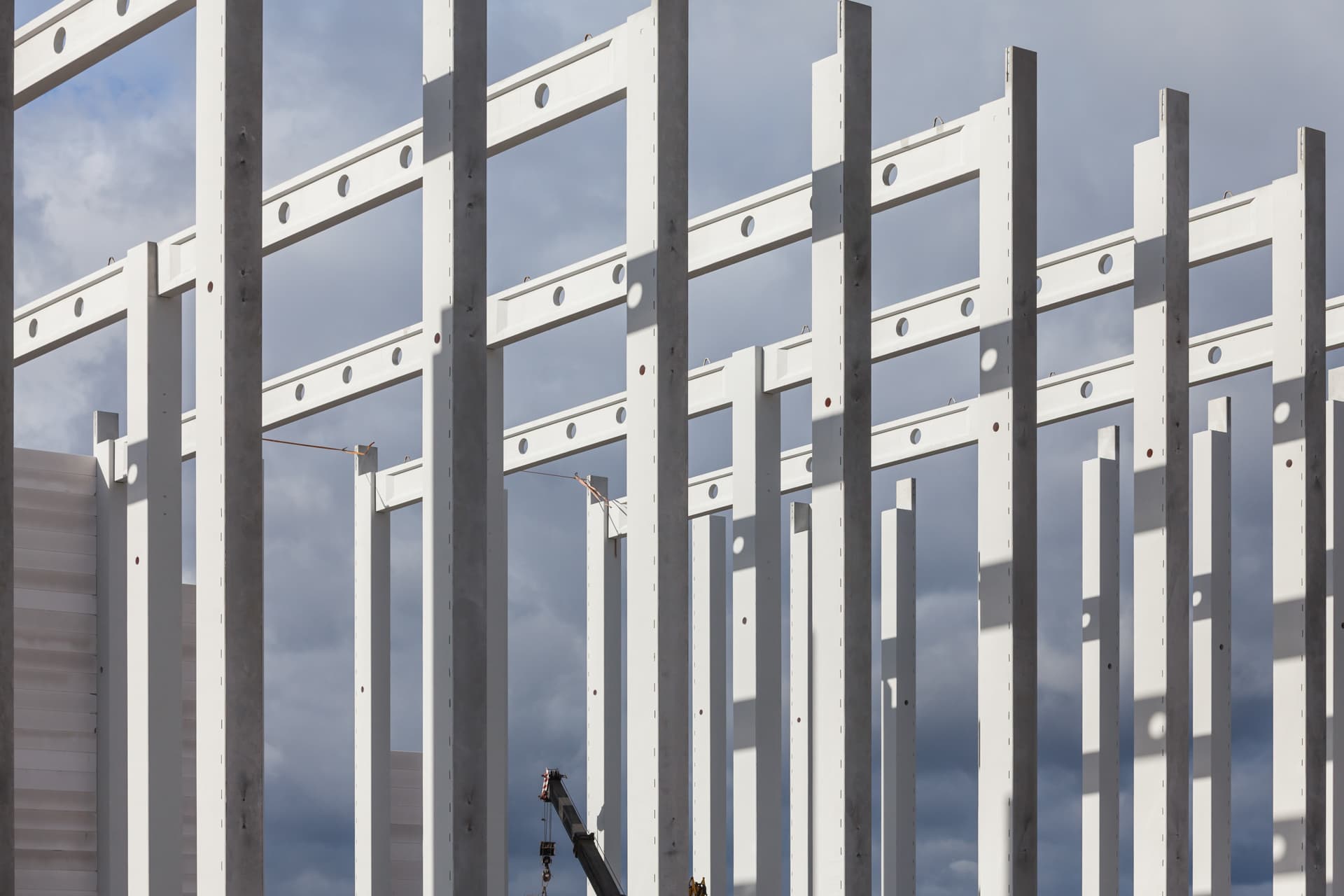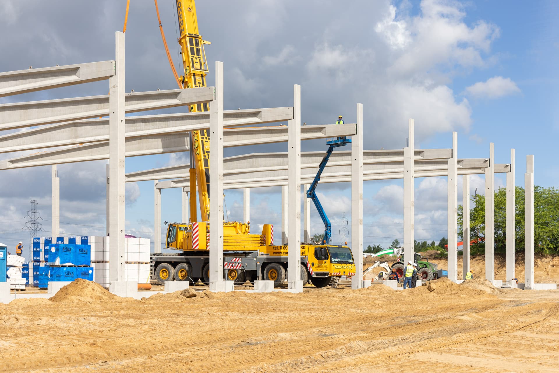 Słupy żelbetowe wykonuje się na indywidualne zamówienie generalnego wykonawcy w specjalizowanych zakładach prefabrykacji – Commercecon od lat współpracuje w tym zakresie z firmą BETARD. Po dostarczeniu ich na budowę, wykwalifikowane i doświadczone brygady montażowe dokonują montażu, wykorzystując w tym celu wyspecjalizowane maszyny budowlane, dostosowane do technologii montażu.