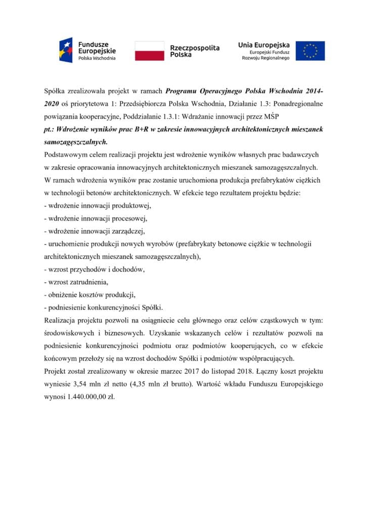 W związku z połączeniem spółek Fabet oraz Betard pod nazwą Betard, informujemy o realizowanym projekcie ze środków Unii Europejskiej: