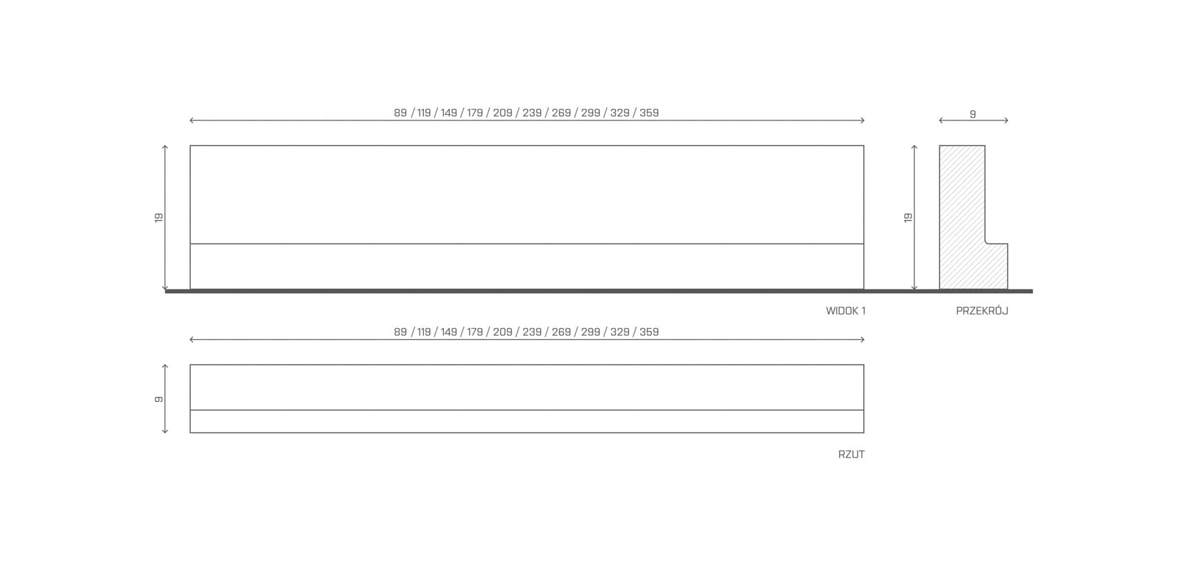 Belki nadprożowe L-19 to prefabrykowane belki żelbetowe w kształcie litery L, o wysokości 19 cm i szerokości dolnej stopki 9 cm. Elementy dostępne są w różnych wariantach długości – od 90 cm do 360* cm (patrz tabela). Produkowane z betonu klasy C20/25, przeznaczone są do wbudowania w ściany nośne zewnętrzne i wewnętrzne oraz osłonowe nieobciążone stropem. Każde nadproże składa się zazwyczaj z dwóch prefabrykowanych belek typu „L19-Nn” i części monolitycznej, wykonywanej na budowie. Wytrzymałość ogniowa elementów to REI-60 – mogą być stosowane w budynkach o odporności pożarowej obiektów klasy C.